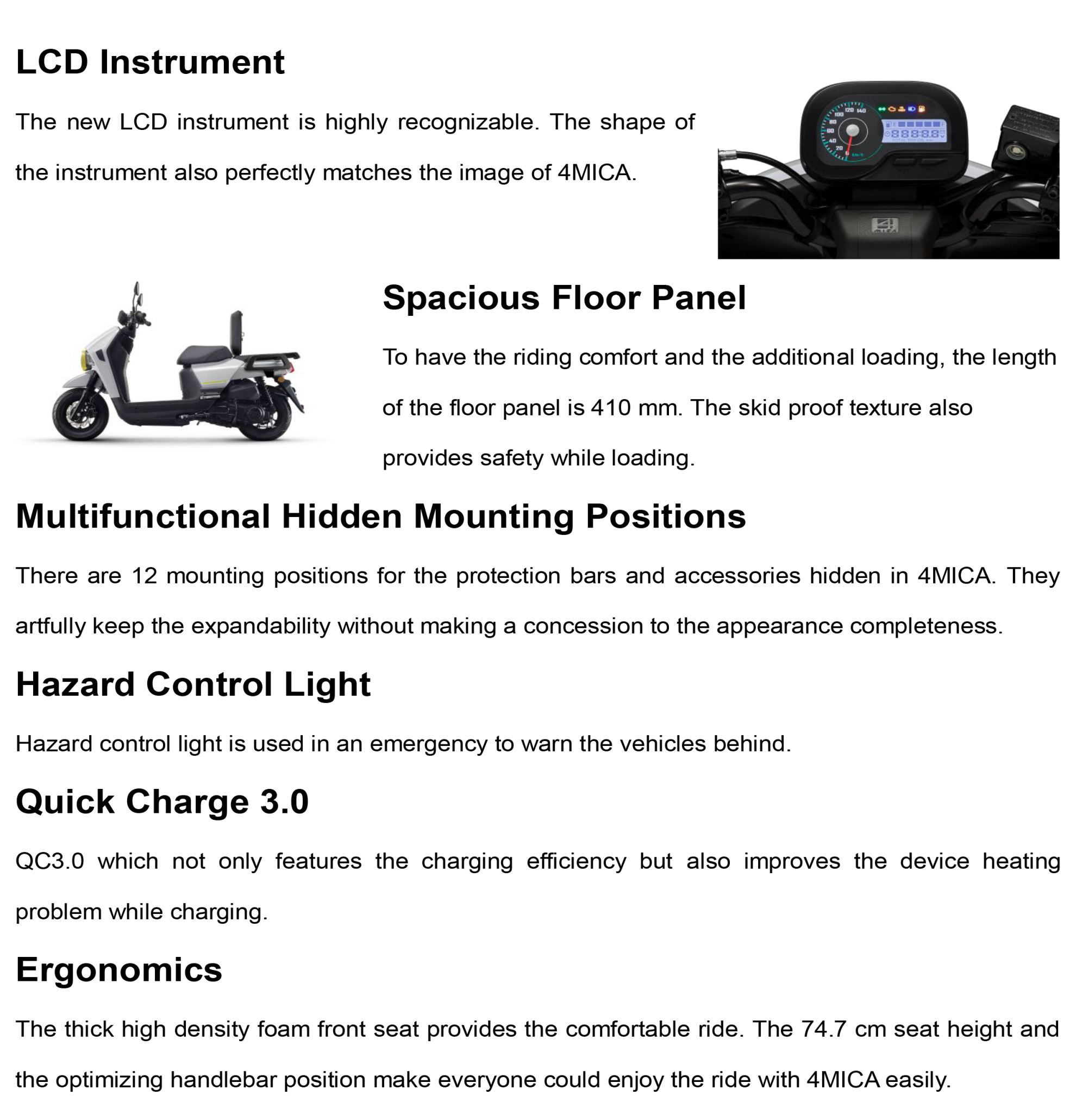 Our exhibition area is divided into 6 parts as Electricity, Adventure, Fashion, Freedom, Dynamic, and Urbanity. The design of the areas show diverse features brought by different models, as if entering a great adventure!